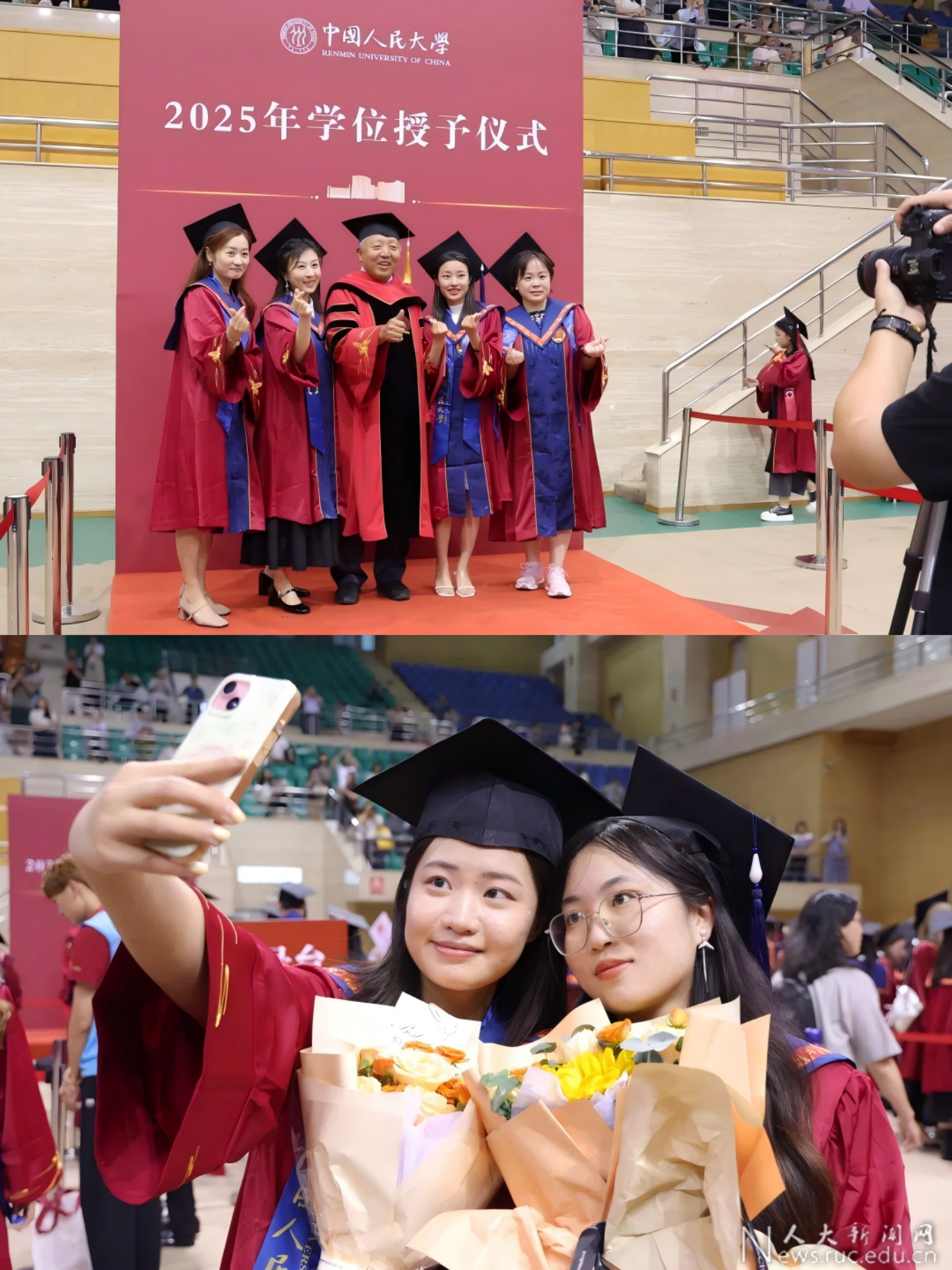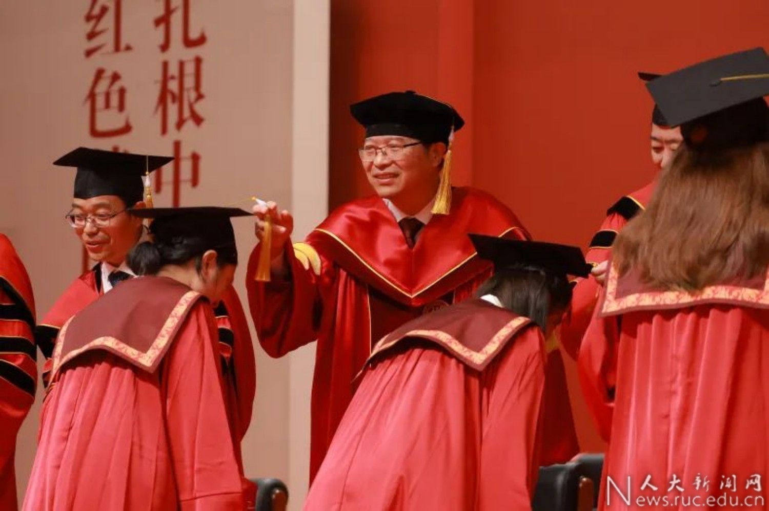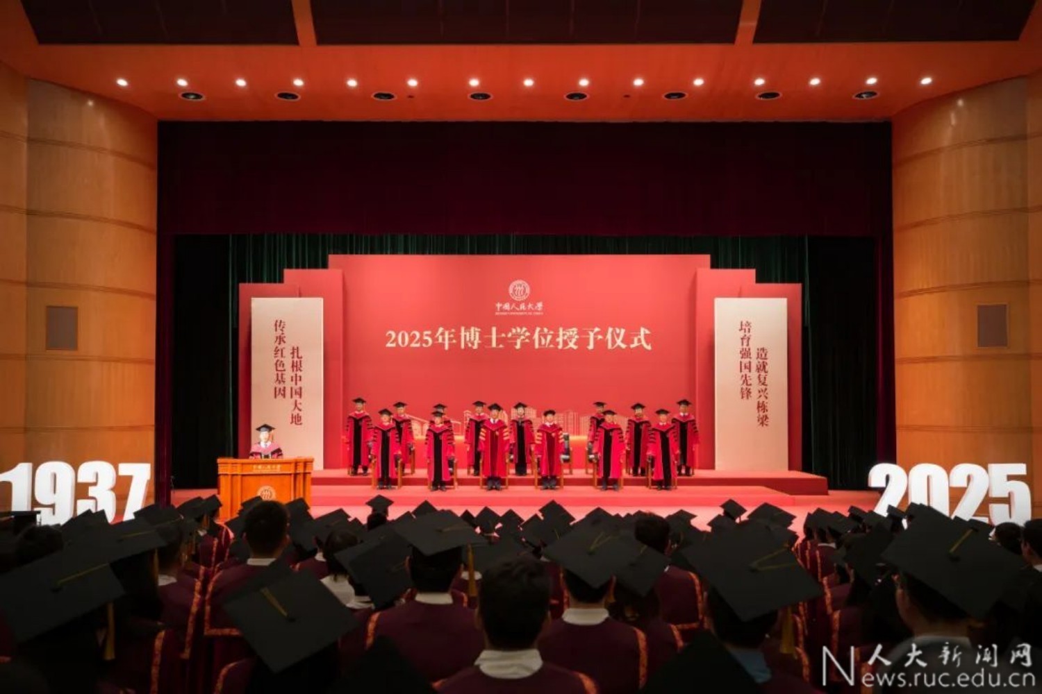 6月23日,中国人民大学2025年学位授予仪式举行。1074名博士毕业生、4435名硕士毕业生、2881名本科毕业生圆满完成学业,接受“一对一”拨穗,在师长的嘱托与祝福中,坚定“复兴栋梁、强国先锋”的志向。
