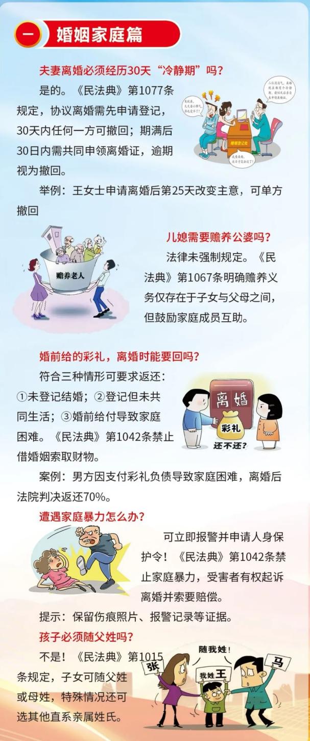2020年5月28日,十三届全国人大三次会议表决通过了《中华人民共和国民法典》,该法自2021年1月1日起正式施行。《中华人民共和国民法典》共计7编、1260条,各编依次为总则、物权、合同、人格权、婚姻家庭、继承、侵权责任以及附则。2025年5月,我们迎来了《中华人民共和国民法典》施行后的第五个“民法典宣传月”。民法典的每一项条款都紧密关联着我们的日常生活,接下来,让我们采用图解的形式,一同深入了解《中华人民共和国民法典》在实际生活中的具体案例呈现。