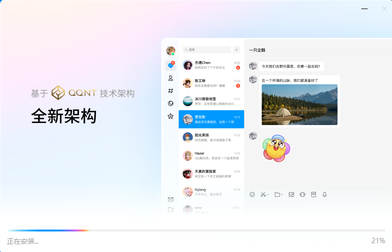 1、基于QQNT技术架构全面升级,使用操作更加流畅快捷;2、全新UI设计,界面更加简约轻盈; 3、消息页面三栏式设计,查看信息更加流畅; 4、多人语音视频聊天,沟通无极限; 5、还有更多便捷小功能,欢迎下载体验。