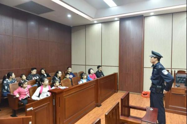 “这就是法院立案的地方。为了方便群众,立案庭实行柜台式流水作业,而且实行立案登记制。”在讲解员的讲解下,孩子们了解了法院的立案程序。