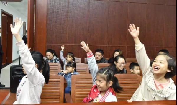 对于讲解员的提问,孩子们都胸有成竹地纷纷举起手,“不能玩手机。”“不可以吃东西。”“不能喧哗,还有走来走去。”随后,进入了体验环节。孩子们穿上了法袍和律师袍,过了一把“小法官”和“小律师”瘾,切身感受司法的公正和法律的威严。