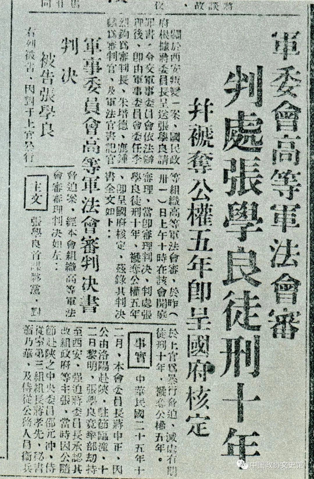 ▲1937年1月1日,《中央日报》刊登判处张学良的消息。