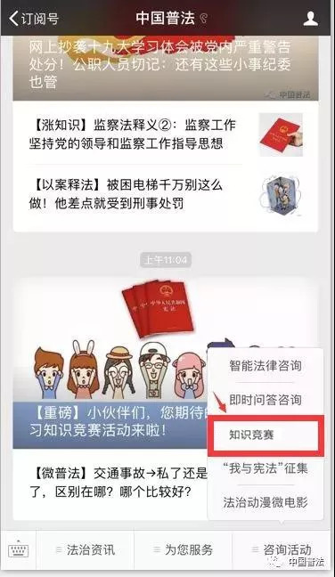 2、中国普法微信公众号每日推送一道试题,每月共计20题;