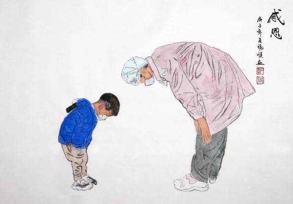 海南省文联副主席,海南省政协常委、政协书画院执行副院长李福顺先生用心中的爱、手中的笔,以书画创作方式记录海南省各级领导干部、一线医护人员在抗击疫情中感人的瞬间,讴歌战斗在战疫前线最美的人,凝聚起抗击疫情的强大精神力量。