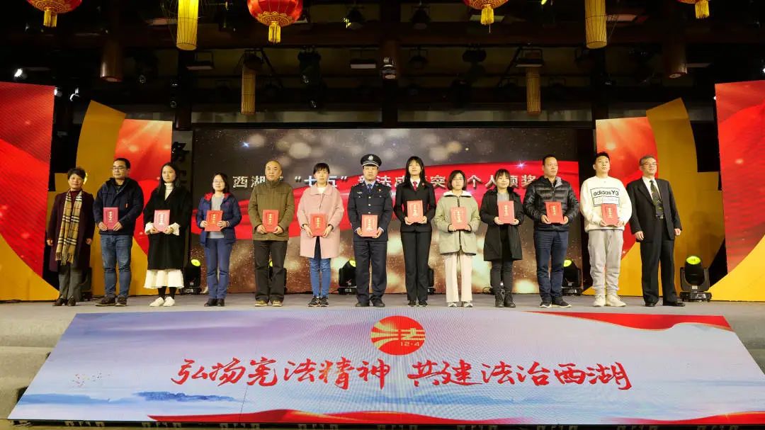 12月2日,西湖区举办《弘扬宪法精神 共建法治西湖》——西湖区2020年国家宪法日法治文艺汇演,西湖法院综合办公室刘玄被评为西湖区“七五”普法成绩突出个人上台领奖。