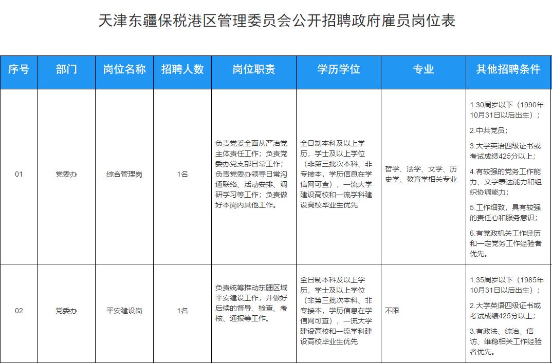 根据工作需要,天津东疆保税港区管理委员会拟公开招聘政府雇员。政府雇员主要在东疆保税港区从事行政辅助性工作,实行合同制管理。现公告如下:
