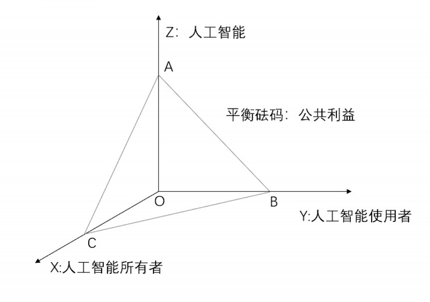 图1 人工智能生成内容四元利益平衡模型如上图,设某一人工智能生成内容的权利整体为1,其中X、Y、Z轴分别代表人工智能所有者、人工智能使用者和人工智能所占的权利比重。其中OA=OB=OC=1。此时,三角形ABC平面上的点即为人工智能所有者、人工智能使用者和人工智能权利占比的所有情形集合。例如其中A点坐标(0,0,1)即意味着人工智能所有者和使用者均对人工智能生成内容不享有权利,而人工智能享有完整权利。B和C两点坐标分别代表由人工智能使用者和人工所有者享有完整权利。三角形ABC中任意一点E(X1,Y1,Z1),则有X1+Y1+Z1=1的恒定公式,其中X1,Y1,Z1分别代表了三方在具体人工智能生成内容权利的分配比例。(2)四元利益平衡最佳动线论证。在上述模型中,如何确定最佳的分配比例呢?主要考虑的标准为,基于前文论述的原理,判断权利运行中效率与公平的最佳取向。已知个案中,人工智能及其使用者是具体生成内容的直接创造者。因此在权利分配中需要重点解决两个问题。其一,人工智能所有者是否应当参与权利分配。关于人工智能所有者,赋予其人工智能生成内容权利的主要理由在于其开发人工智能付出的巨大劳动。但是,本文认为,就人工智能生成内容而言,赋予人工智能所有者相应权利是不合适的。首先,人工智能所有者就开发、运营人工智能所投入的成本,其劳动对价在于,研发获得的知识产权等法定权利,以及市场运营人工智能获取的经济收益。换言之,所有者的劳动并未“掺入”人工智能生成内容本身,且其劳动已获补偿,再赋权所有者难言公平;其次,从具体生成过程看,人工智能所有者并未有任何生成内容的意思与行为,其本质仅提供了人工智能这一具有“拟人化”功能的机器而已。内容的创造性来源于人机互动的结果。例如在分配一张照片的著作权时,显然不可能因为相机生产商研发了优质的相机,而对相机产生的所有照片分的“著作权”的一杯羹;最后,因为人工智能所有者多为有限的商主体,一旦赋予人工智能生成内容的权利,将不可避免的导致权利(力)过分集中在特定商主体,垄断对公共利益的破坏将更加严重。因此,就人工智能生成内容的权利分配上,人工智能所有者并不适宜作为权利主体。其二,人工智能作为权利主体能否实现。在排除所有者的分配方案后,权利分配方案集中在了模型中的AB折线上。此时,人工智能可以独立作为纵轴参与分配吗?本文认为,人工智能可以通过公益性的集体管理组织代为行权的形式,实现人工智能本身的权益。首先,直接赋予人工智能权利是不可行的,人工智能作为人造物,对于人工智能行业发展的激励作用,本质仍需要通过驱动人工智能各方参与者方能实现。从财产理论看,其也没有后续独立行权的可能;其次,从拟制权利主体角度看,上文已论述,人工智能所有者并非合适的代行权主体。将权利拟制给使用者,会导致“不劳而获”的负面法律评价效果,也和人工智能对生成内容具有创造性贡献的客观事实不符合,因此由集体管理组织代人工智能管理其创造性贡献所应享有的利益,不失为合适路径。由此可知,在上述三维模型中,基于公共利益的考量,AB折线是人工智能生成内容权利分配的最佳动线,但是其中B点应当被剔除,因为该点中权利完全由人工智能使用者所有,也即意味着创造性完全来源于使用者,此时意味着人工智能本身未存在贡献,故此时人工智能使用者的创造性贡献完全符合著作权法独创性要求,应当转由著作权法保护,不再是人工智能生成内容的范畴,该点也是作品与人工智能生成内容的临界点。三、建议:人工智能生成内容权利的新设如上所述,在AB动线中分配人工智能生成内容的法律权利是最优解。具体而言,如何在立法论中落地呢?本文认为,可以在人工智能法中新设人工智能生产内容权利,并对权利主体、客体和内容进行详尽规定。