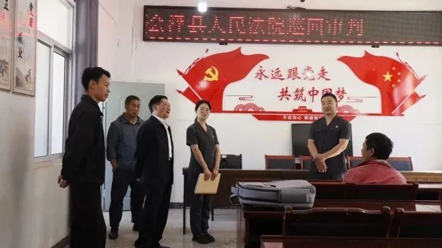 走进迤车法庭,墙上的标语格外醒目,上面写着“以党建带队建促审判保发展”。