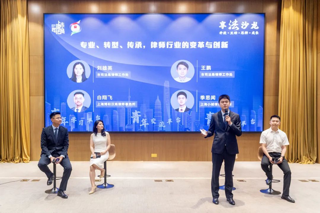 市司法局律师工作处刘雄英和王鹏分别与上海小城律师事务所季思闻、上海博和汉商律师事务所白翔飞“两两组队”,分正反两方对“律师应选择全面化道路还是专业化道路”“律所传承应选择师徒制还是公司制”“律师行业转型应根据市场选择还是政策导向”三个问题展开思辨和交锋。