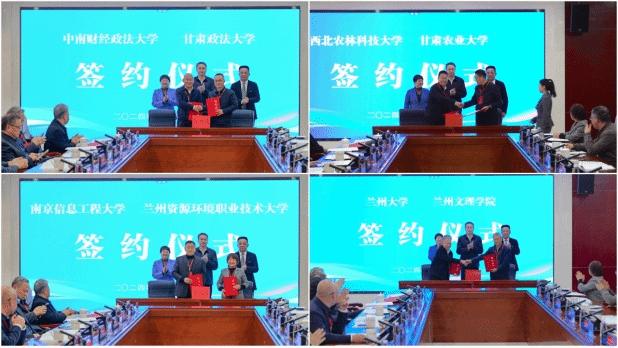 会议还举行了西北农林科技大学与甘肃农业大学、兰州大学与兰州文理学院、中南财经政法大学与甘肃政法大学、南京信息工程大学与兰州资源环境职业技术大学对口支援协议签约仪式。