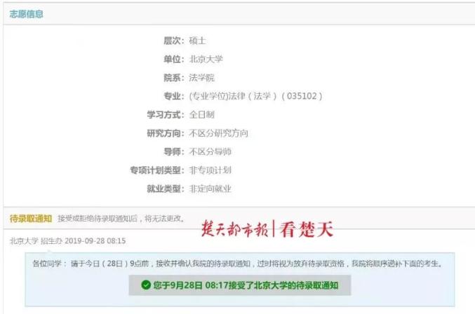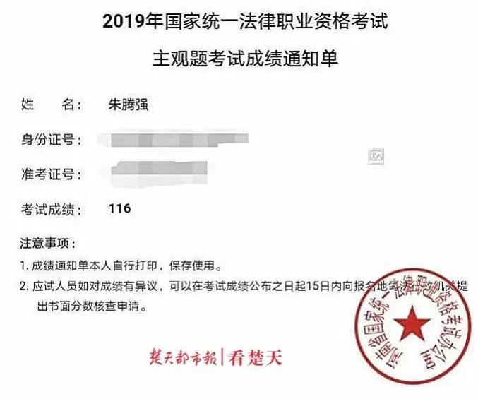 朱爸爸取得佳绩的同时,朱林啸也取得了好成绩,目前其已经被推免到北京大学,攻读法律硕士研究生。