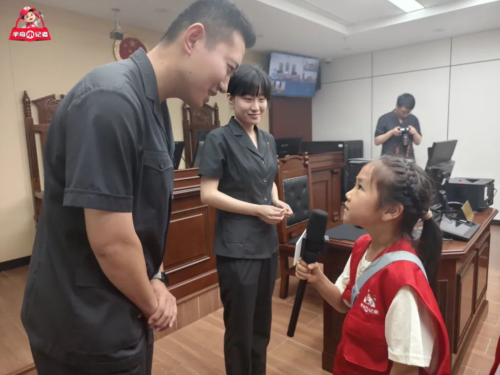 活动尾声,法庭工作人员向每位“小探索家”赠送了图文并茂的《民法典》宣传手册,鼓励他们学习与生活息息相关的法律知识。孩子们抓住机会,就心中的疑问采访了法庭工作人员,问题虽充满童真却透露出对法律的初步思考。最后,大家带着满满的收获与对法律的敬意,在法庭前合影留念,为这次富有意义的法治启蒙之旅画上圆满句号。