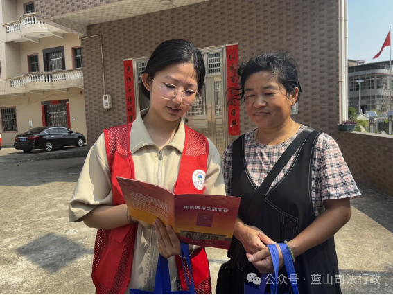近日,蓝山县司法局组织大学生深入蓝山县毛俊镇鹊峰村开展“送法下乡”暨“利剑护蕾”法治宣传活动。