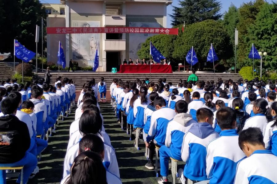 黔西南州安龙县第二中学邀请为全校近1200余名师生开展《民法典》《未成年人保护法》及预防校园欺凌公益法律宣讲。