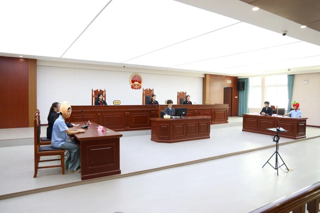 模拟法庭活动以“番茄霸凌鸡蛋”创意情景剧拉开序幕,通过生动巧妙地演绎校园欺凌案件,深刻揭示了校园霸凌的危害性。从书记员宣读纪律到审判长敲槌宣判,知识产权学院学生们严格按照法庭标准化程序进行模拟庭审,完整还原了庭审流程,沉浸式感受法律的庄严与秩序。