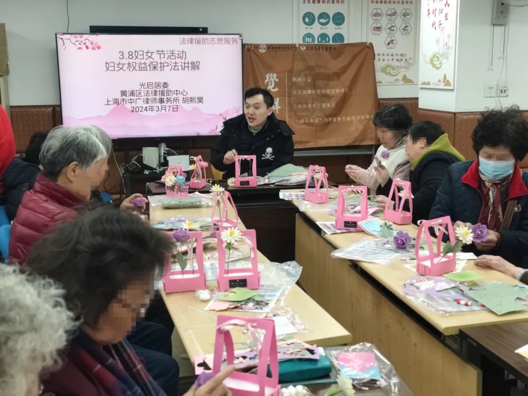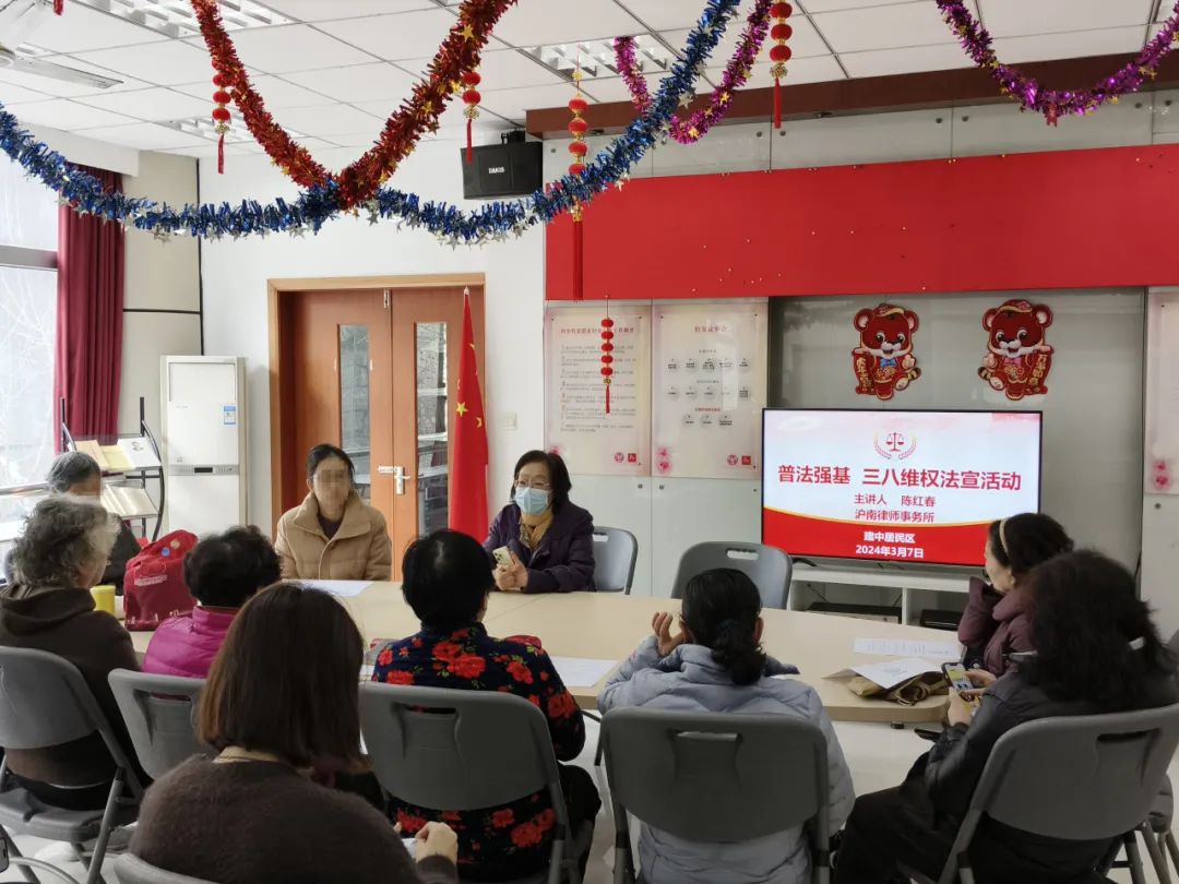 在“三八”妇女节来临之际,为提高妇女维权意识,营造尊重和维护妇女合法权益的良好氛围,中心组织法律援助律师围绕妇女权益保障开展了一系列普法讲座,上海市长江律师事务所的周忆律师在老西门街道、上海市中广律师事务所的胡熙昊律师在光启居委、上海盛沃律师事务所的陈小花律师在桑园居委、上海市沪南律师事务所的陈红春律师在建中居委、上海市锦港律师事务所的马涛律师在巨鹿居委、上海言知律师事务所的巫如秀律师在复兴居委分别开展了妇女维权普法讲座,就妇女权益保障中的重点注意事项、法律法规、存在的问题、典型案例等内容进行生动的阐述,提高妇女法治意识,鼓励妇女学法、用法,积极运用法律武器保护自身权益。3月至今,共开展“迎三八”法律援助志愿服务6场,服务群众100余人次,发放各类宣传资料300余份。