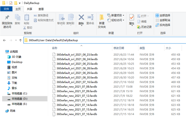 1、打开我的电脑,全盘搜索360sefav,找到本地备份的收藏夹数据,选择不同日期的备份数据,挨个恢复试试,直到找到之前的数据,右键点“打开文件位置”找到文件目录。安全浏览器11版本后收藏夹数据会备份一个加密的收藏夹数据文件,用360default_ori_2021_07_16.favdb含有ori字符的这种文件,重装系统或复制到别的电脑上,可以通过恢复本地备份数据恢复出来。不要用360sefav_new_2021_07_16.favdb这种含有字符new的文件,在重装系统后会无法恢复,复制到别的电脑上也无法进行恢复。