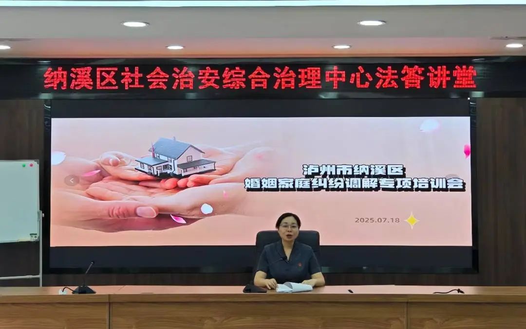为推进家庭矛盾纠纷多元化解,锻造一支懂法、会调、有爱的基层婚姻家庭矛盾调解队伍,合力防止“民转刑”的悲剧发生,7月18日,纳溪区法院在区社会治安综合治理中心“法治大讲堂”举办法答讲堂,开展婚姻家庭纠纷调解专项培训。