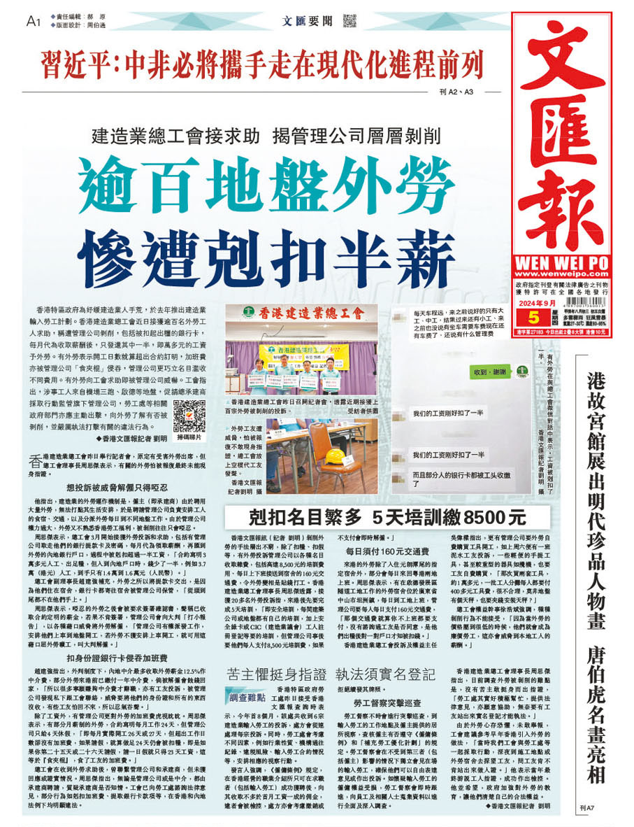 ●香港文匯報多次追蹤報道,揭露「管理公司」壓榨建造業外勞工資等弊端。
