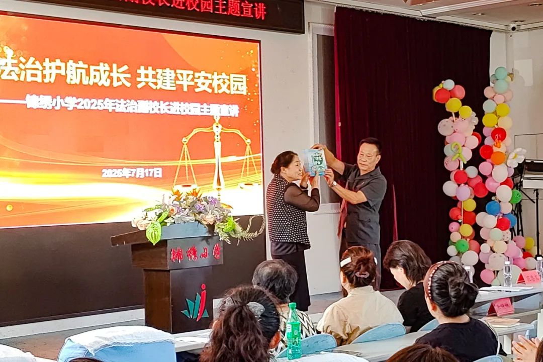 讲座结束后,第五党支部党员向锦绣小学捐赠法治图书《我有“法宝”护身》,助力校园法治文化建设。