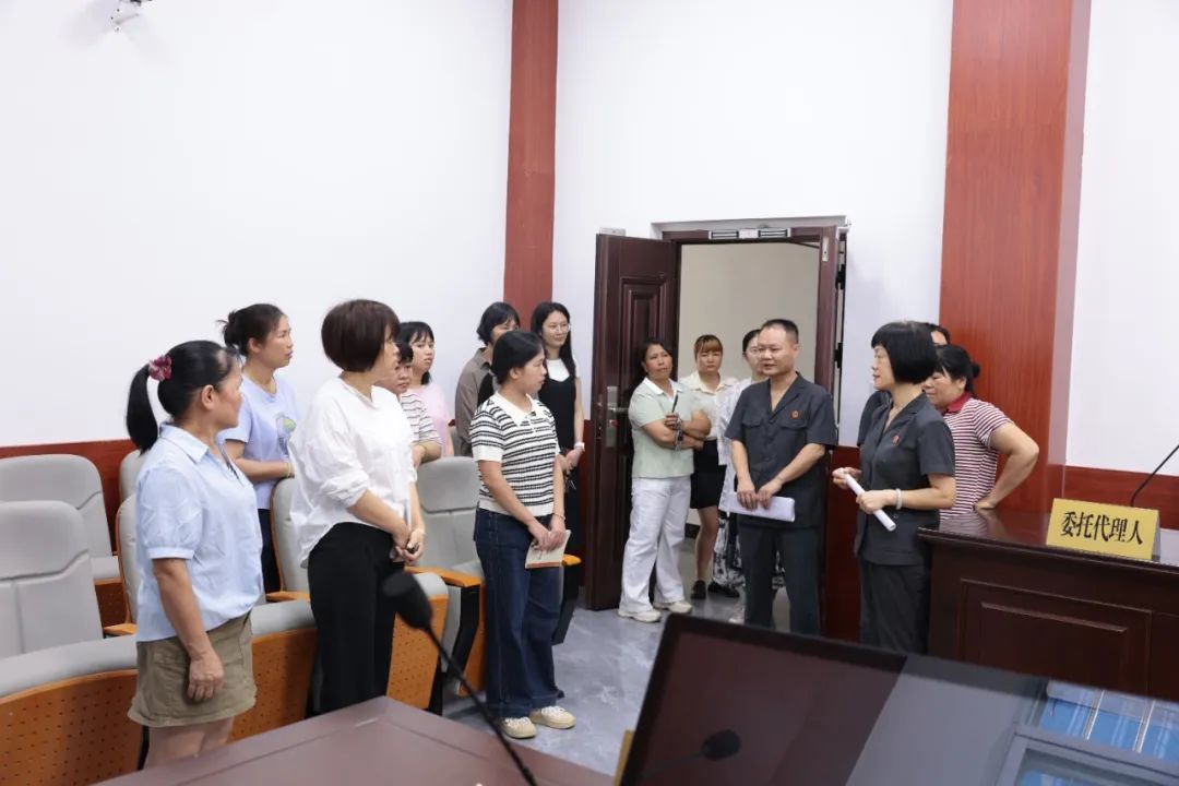 “现在宣布开庭!”随着一声清脆的法槌声,一场别开生面的“婚姻家庭纠纷模拟庭审”在岭脚法庭拉开帷幕。法官杨超雄、易金玉全情投入,以真实案例改编的婚姻家庭案件为蓝本,生动还原庭审全过程。这场“沉浸式”模拟庭审,如同星星之火,点燃了大家的法治意识,让大家深刻感受法律对家庭教育的规范与保障。“原来法庭是这样维护妇女儿童权益的!”参与旁听模拟庭审的李老师感慨道。