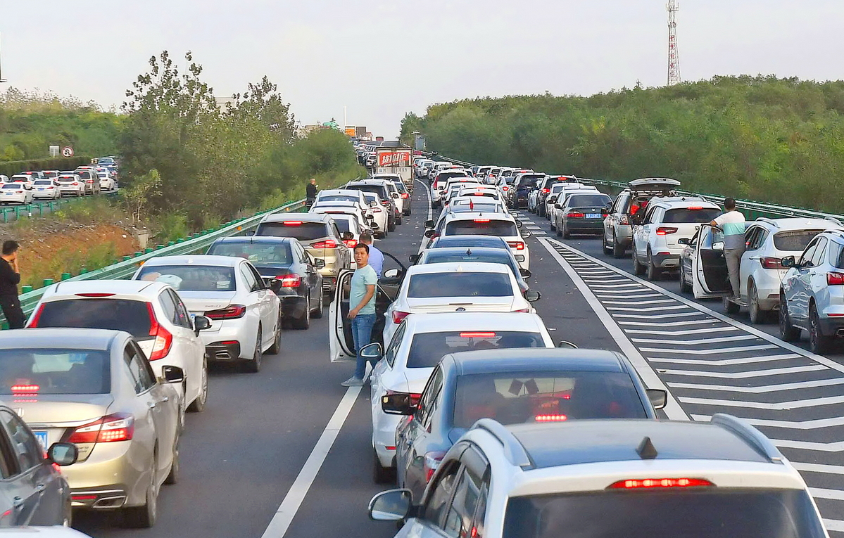 2020年10月7日,安徽省滁州市高速路上的车流。(图片来源:中国日报)
