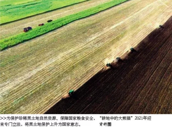 环境资源领域的法制建设,功在当代、利在千秋。12月,与黄河保护法草案携手同审的还有黑土地保护法草案。为保护珍稀黑土地自然资源、保障国家粮食安全,“耕地中的大熊猫”2021年迎来专门立法,将黑土地保护上升为国家意志。不设章节,直奔主题,形式简明,突出针对性、适用性和可操作性,“小快灵”特点再次令人眼前一亮。