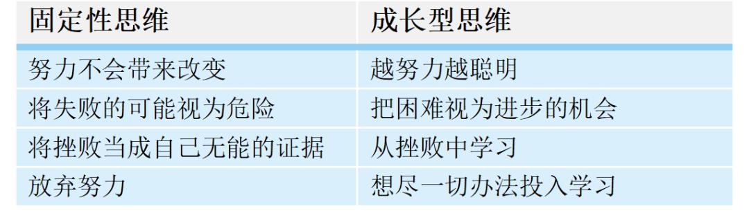 而事实上,这是一种思维的转变:固定型思维转变为成长型思维。