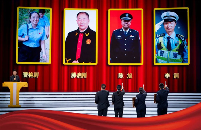 获得“2022年度致敬英雄”称号的有:用生命守护公平正义的巾帼检察官曹艳群,坚守公平正义、一心司法为民的好法官滕启刚,重戒治、讲技巧的司法行政戒毒人民警察陈旭,为救执法对象壮烈牺牲的交通警察李涌。
