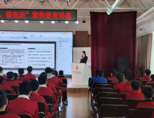 于亚男法官以宪法基本知识和青少年权益保护为主题,结合学生们的心理特点,通过讲解宪法的渊源、地位、发展历程以及宪法对于国家、人民的意义等知识,引导同学们自觉成为宪法的忠实崇尚者、自觉遵守者、坚定捍卫者。