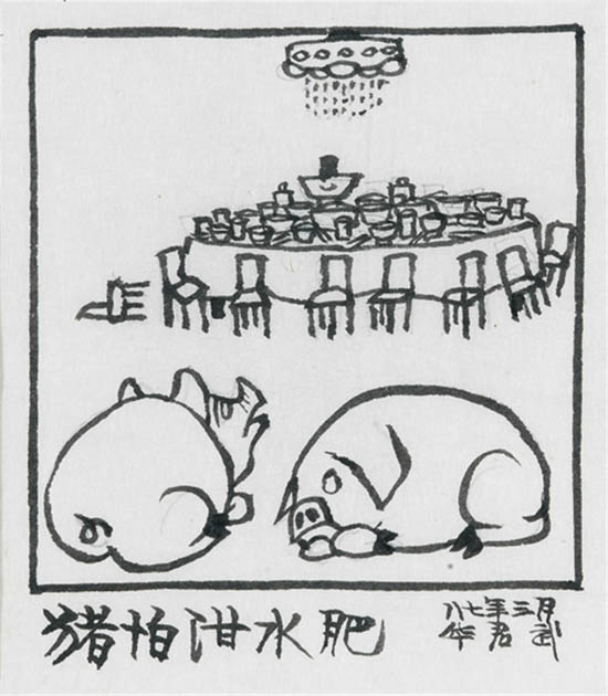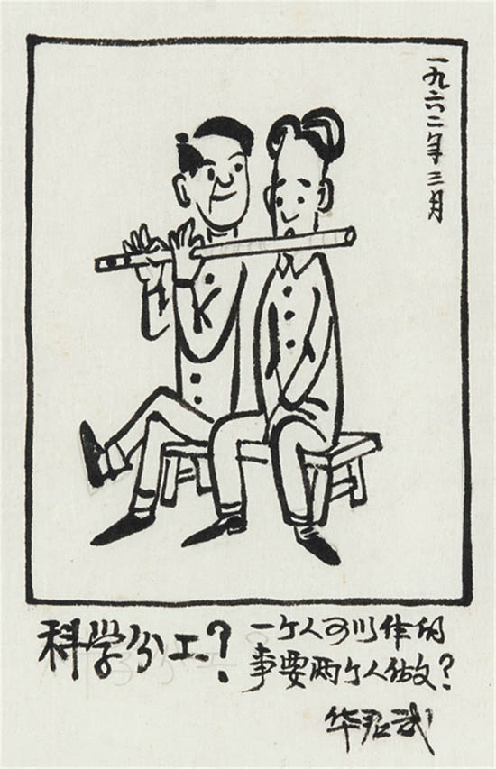 华君武(1915-2010),祖籍江苏无锡荡口,出生杭州;中国著名漫画家;1938年到达延安,华君武从事抗日宣传并为《解放日报》画时事漫画;1940年4月加入中国共产党;1949年12月华君武历任《人民日报》美术组组长、《人民文学》美术顾问;1961年起,华君武开始在《光明日报》的《东风》副刊上发表“人民内部讽刺漫画”;后在“文革”其间受批斗;1979年华君武当选中国美协副主席,曾任全国人大代表、政协委员;2010年6月因病于北京逝世,享年95岁。