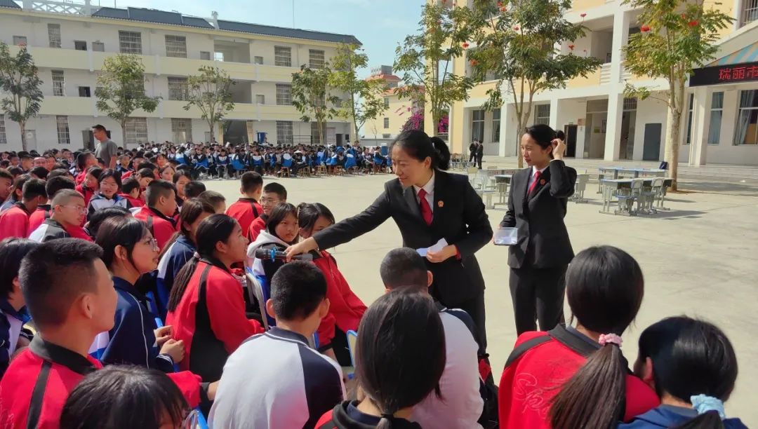 2月27日上午,瑞丽市人民法院联合瑞丽市民族中学,把真实庭审现场搬进校园,1200余名师生共同体验了这堂"超硬核"的法治实践课!