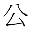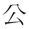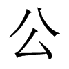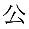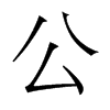 (1) (会意。小篆字形,上面是“八”,表示相背,下面是“厶”(“私”的本字)。合起来表示“与私相背”,即“公正无私”的意思。本义:公正,无私)