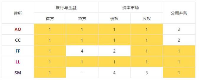 在Magic Circle律所之中,年利达在核心的银行与金融、资本市场和公司并购方面的业务能力最全面。在Chambers UK 2019的排名中,无论是银行与金融、资本市场,还是公司并购,年利达都被评为Band 1。相比较而言,安理和高伟绅尽管能够在银行与金融、资本市场领域被评为Band 1,但公司并购只被评为Band 2,富而德和司力达则是公司并购被评为Band 1,但银行与金融或资本市场的某个领域会有所不及。