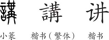 “讲”是会意兼形声字。小篆从言,从冓(两相交接),会讲和之意,冓兼表声。隶变后楷书写作“講”。汉字简化后写作“讲”。