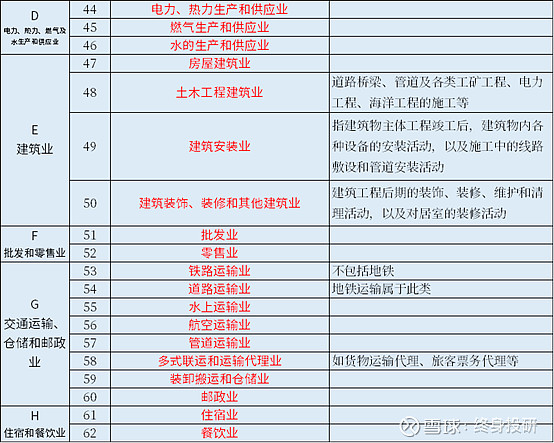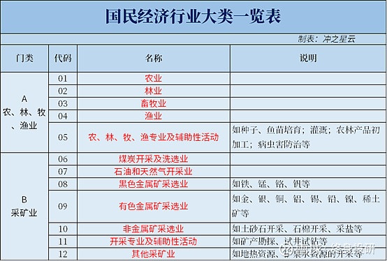 下表总结了所有行业门类和大类。其中有一些大类若只看名称,会产生一些疑问,不知道具体涵盖哪些范围。本表在对应的说明中做了简单解释。