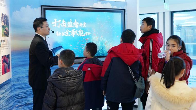 在福建海洋检察保护智慧管理与法治教育基地,检察官介绍了福建海洋检察实践成果、经验做法和典型案例,让“守护平潭‘真宝贝’”的意识在孩子们心中萌芽。
