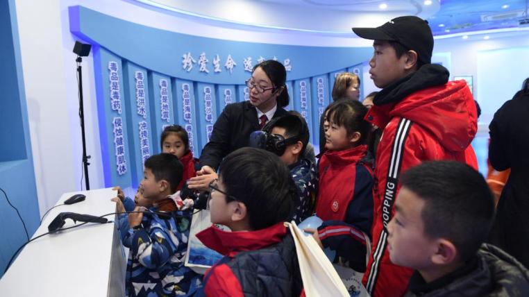 在青少年法治教育基地,孩子们通过检察官的讲解详细了解了检察机关未检职能,预防和应对校园欺凌、性侵害,学习防毒禁毒知识,让孩子们“心存敬畏,行有所止”。