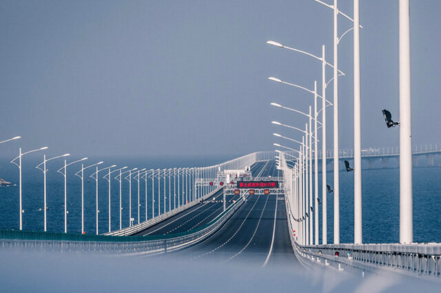 港珠澳大桥,原称伶仃洋大桥,是连接香港、珠海、澳门的超大型跨海通道,全长55公里,是珠海市的地标建筑。大桥总长约29.6公里,穿越伶仃航道和铜鼓西航道段约6.7公里为隧道,东、西两端各设置一个海中人工岛(蓝海豚岛和白海豚岛),犹如“伶仃双贝”熠熠生辉;其余路段约22.9公里为桥梁,分别设有寓意三地同心的“中国结”青州桥、人与自然和谐相处的“海豚塔”江海桥,以及扬帆起航的“风帆塔”九洲桥三座通航斜拉桥。 【 详细>>】