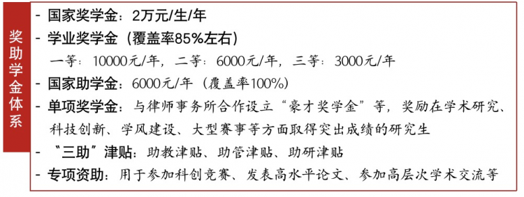 奖助学金制度健全,设立国家奖学金、入学/学业奖学金、国家助学金、单项奖学金、“三助”津贴等。学院专门出台《研究生教育质量提升计划与实施办法》,对研究生参与科创竞赛、发表高水平论文、参加高层次学术交流等给予大力资助与支持。