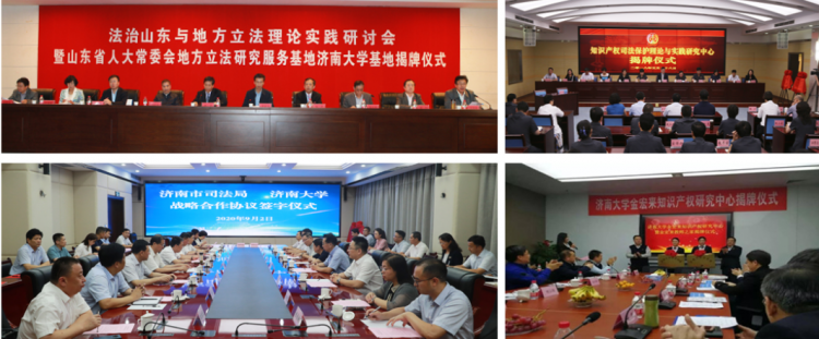 本学位点依托的政法学院牵头成立山东省法学会社会法学研究会、济南市法学会行政法学研究会,学校以法学专业为支撑建有山东省人大常委会地方立法研究服务基地、山东省司法厅政府立法研究服务基地、山东省教育厅立法研究服务基地、济南检察理论研究基地、济南律师学院、济南国际法律服务研究院、知识产权司法保护理论与实践研究中心、济南市知识产权人才培养基地等省市级科研平台。
