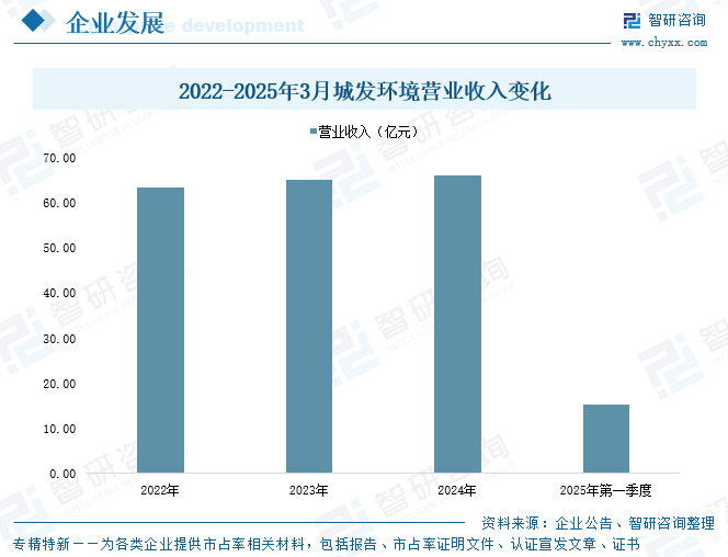 城发环境股份有限公司是河南投资集团控股的环保公司,成立于1998年12月31日,1999年3月19日在深圳证券交易所上市,股票简称“城发环境”。城发环境业务涉及生活垃圾、餐厨垃圾、城市污泥等各类低值废弃物的无害化处置和资源化利用;城镇供水、污水、清洁供暖项目的投资、建设及智慧化运营;高速公路等交通设施及配套产业的投资、建设、运营;工程设计咨询等专业化服务。数据显示,2024年、2025年第一季度,城发环境营业收入分别为66.11亿元、15.36亿元,同比变化率分别为1.36%、13.19%。