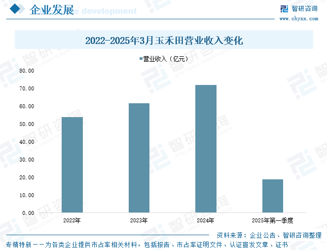 玉禾田环境发展集团股份有限公司始创于1997年,2020年1月在深交所创业板上市,股票简称“玉禾田”。玉禾田是中国领先的城市综合运营管理服务商,拥有城市运营、物业管理、园林绿化、垃圾分类、文旅+环卫、低空经济、智慧城市建设、智慧环卫系统、智慧停车、智慧照明、智能机器人、智能装备等业务板块,致力于为政府机构及企业客户提供全场景、多维度的城市综合服务解决方案。数据显示,2024年、2025年第一季度,玉禾田营业收入分别为72.03亿元、18.82亿元,同比变化率分别为16.93%、10.58%。