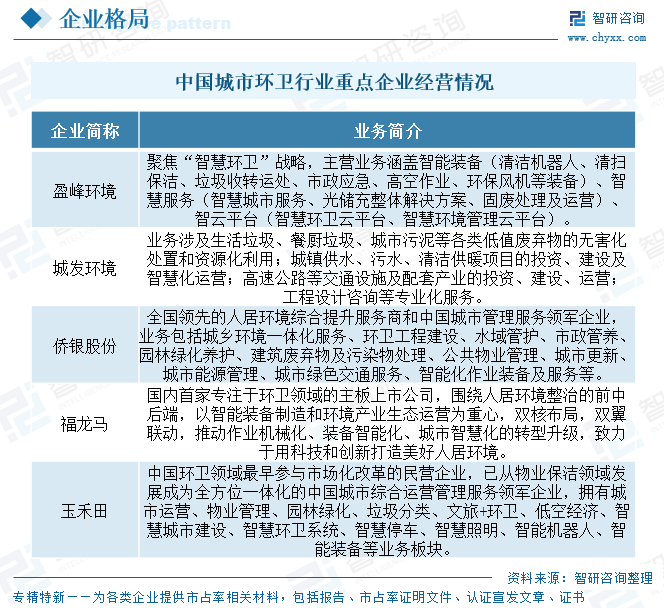 目前,我国城市环卫行业市场竞争格局呈现多元化与集中度提升并存的特征。其中,侨银股份、玉禾田、盈峰环境等头部企业凭借技术、资本与规模优势加速扩张,通过并购整合上下游资源、拓展全产业链服务(如装备制造、垃圾分类、末端处理一体化),形成跨区域、跨领域的竞争壁垒,所占市占率持续攀升。与此同时,许多区域性中小型企业依托本地化服务网络与政府关系,在细分领域(如乡镇环卫、老旧城区改造)仍占据一定市场份额,但面临技术升级与成本控制的双重压力。