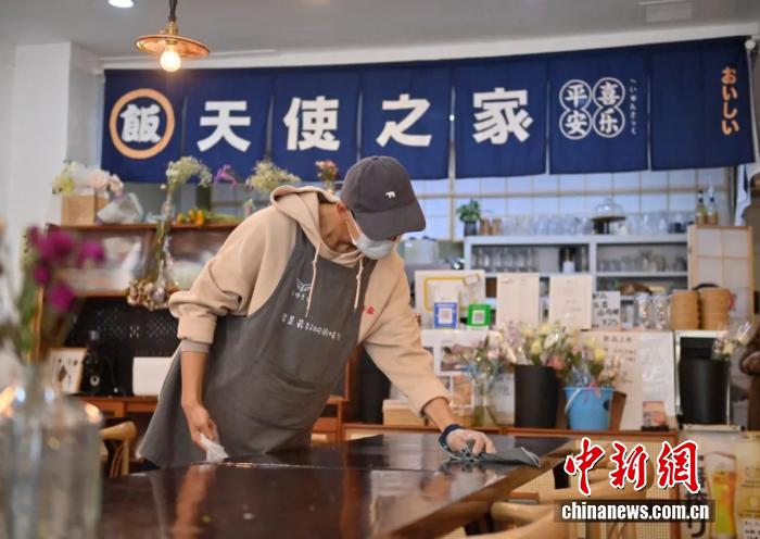 2025年5月8日,吉林长春“天使之家”餐饮店的店员在清理餐桌。这里的部分工作人员是孤独症患者,他们通过训练,已经可以完成切菜、备餐、收拾店内卫生、撤餐等工作。 中新社记者 张瑶 摄