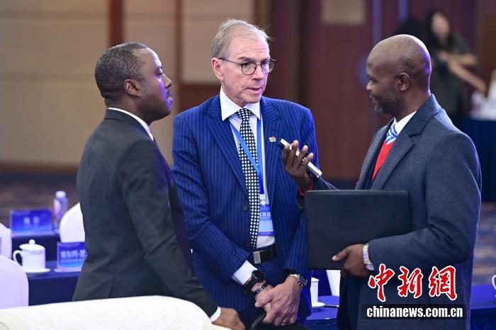 2023年12月5日,“纪念《世界人权宣言》发表75周年”国际研讨会在北京举行。图为与会嘉宾在会后交流。中新社记者 田雨昊 摄