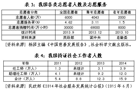 志愿者和社会工作者又称为“志工”、“义工”和“社工”,是公益慈善最基础和重要的人力资源。近年来我国的志愿者和志愿服务发展迅速,已形成初步的多样化志愿服务体系。与此同时,我国各层次专业社会工作得到极大普及,已成为支持公益慈善服务最重要的专业社会资源。详见表3、表4。