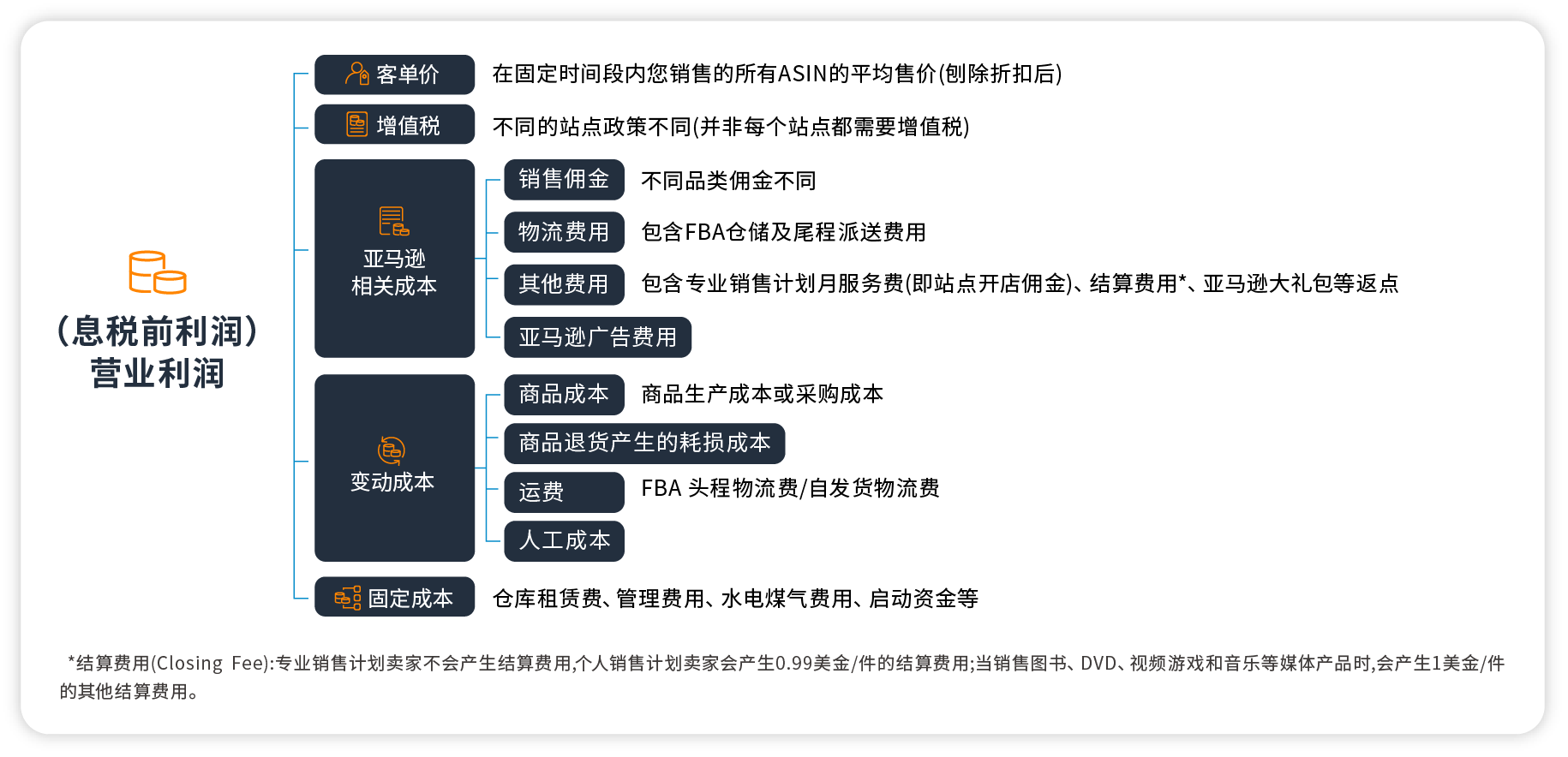 在与亚马逊相关的各项成本中,亚马逊专业销售计划月服务费(即站点开店佣金)、亚马逊销售佣金相对销售额是固定的,而物流关税成本和其他可能产生的成本,则会根据生产、销售和运营情况有所浮动。