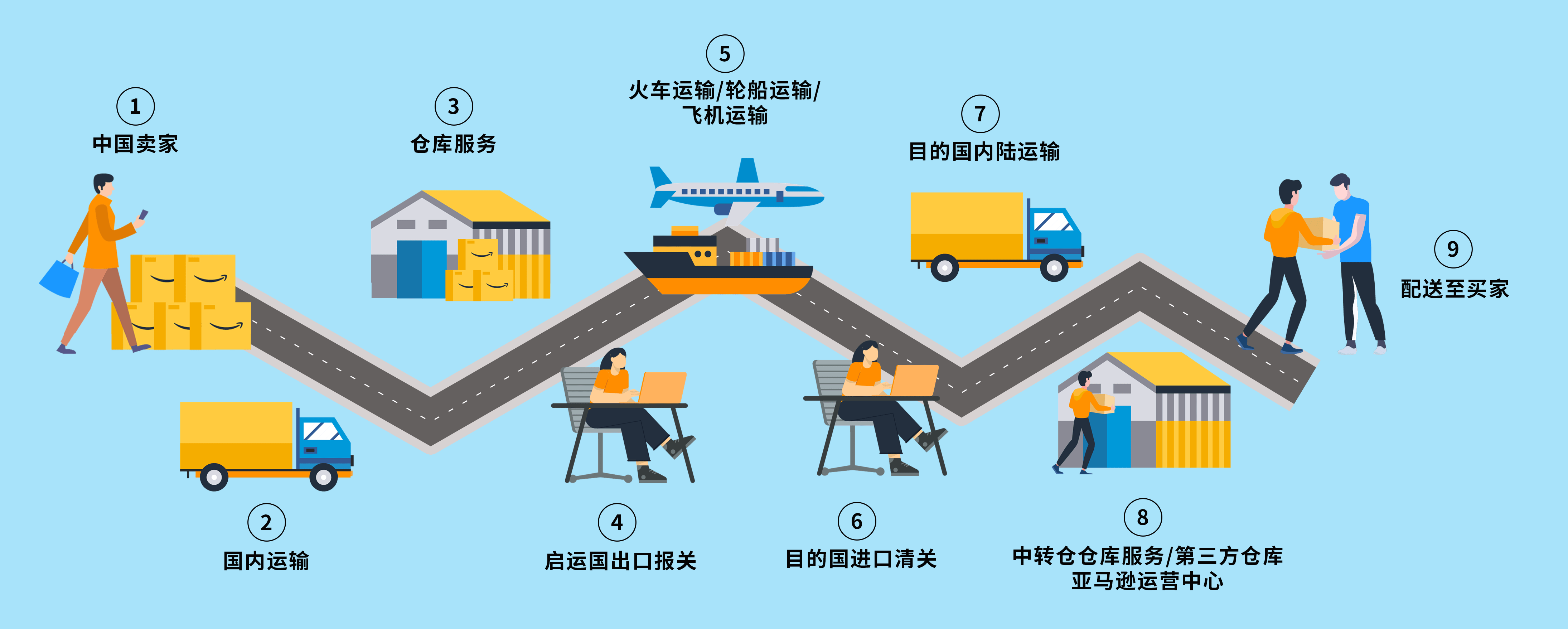 跨境物流,主要是指将卖家的商品从国内发货至海外并配送至消费者手中。您可通过下图直观了解跨境物流各环节: