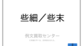 似た意味を持つ「些細」(読み方:ささい)と「些末」(読み方:さまつ)の違いを例文を使って分かりやすく解説しているページです。どっちの言葉を使えば日本語として正しいのか、迷った方はこのページの使い分け方を参考にしてみてください。「些細」と「些末」という言葉は、どちらも「取るに足らないこと」を意味しているという共通点があり、本来の意味は少し違いますが混同して使われる傾向があります。